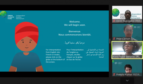 The event opened with a presentation on the GCF’s mission, unique structure, and financing, delivered by Peter Carlson, the IRM Communications Officer. Peter highlighted the GCF’s significant presence in Africa, with over 100 projects and $6.94 billion in GCF funding. Following this, Paco Gimenez-Salinas, Compliance and Dispute Resolution Specialist at the IRM, delved into the IRM’s core mandate and the broader landscape of redress mechanisms. The final segment of the webinar was led by Preksha Krishna Kumar, Registrar and Case Officer, who provided a comprehensive and detailed overview of the IRM’s complaint submission and handling process.